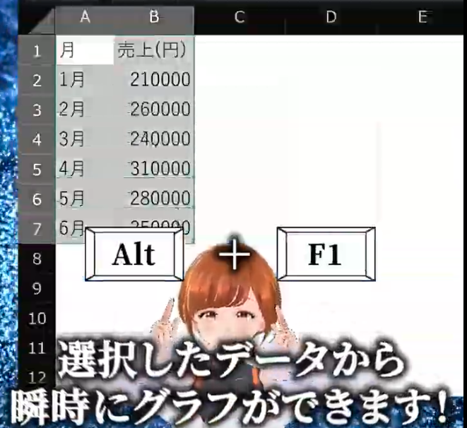 実はExcelには、選択したデータから一瞬でグラフを作るショートカットがあります。