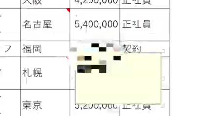 - すでにコメントがあるセルを選択